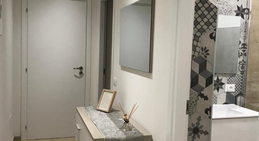 Air Conditioning, Bath or Shower, Bathroom, Bidet, Cleaning products, Dining table, Dishwasher, Flat-screen TV, Hairdryer, Heating, Iron, Ironing Facilities, Kitchen, Kitchenware, Linen, Microwave, Oven, Private entrance, Private flat in building, Refrigerator, Shower, Stovetop, Tile/Marble floor, Toilet, Towels, Upper floors accessible by stairs only, Wardrobe/Closet, Washing Machine