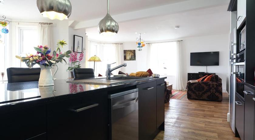 The views were amazing on a calm day , even better on a stormy day , beautiful apartment, so well appointed, from the top end kitchen /island area comfy sofas ,large main bedroom ( all bedrooms with sea views) the sea views from the lounge are stunning and continually changing, unrivalled views plus a truly exceptional apartment a apartment we will definitely return to