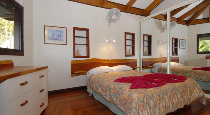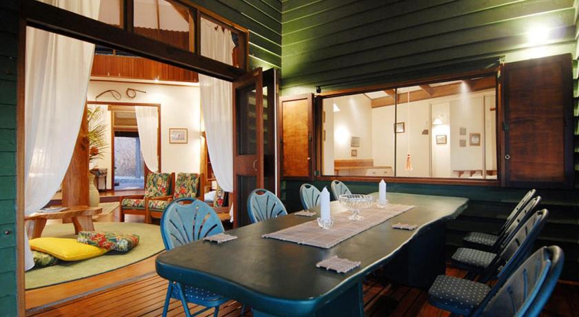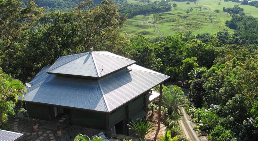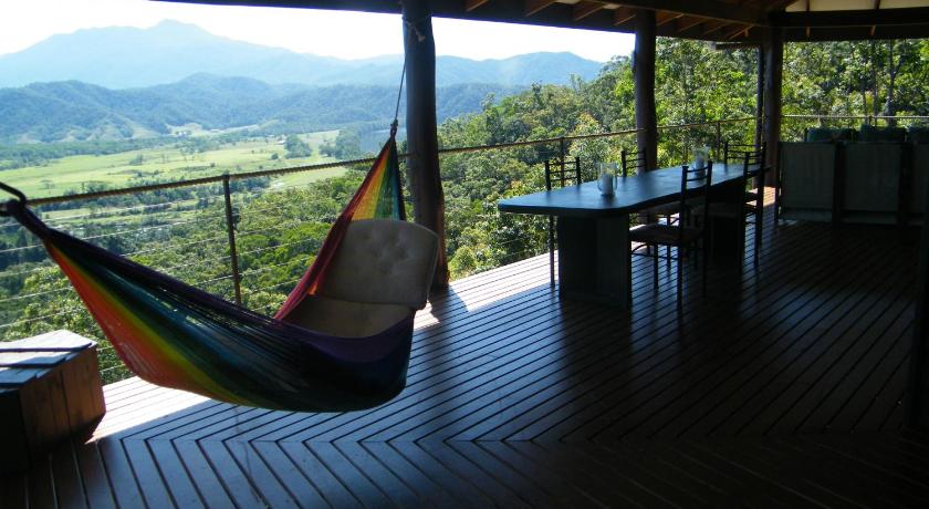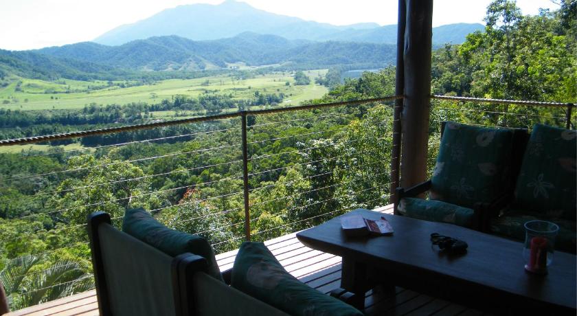 It is ideally situated to enjoy the Daintree Forest: only 5 minutes drive to Daintree Village and all the cruises and forest walks centred there ( and don’t forget the pub), and about 20 minutes drive to the Daintree Ferry and the Cape Tribulation road. It is perched on a hillside, surrounded by forest. Its architecture fits its surroundings perfectly, with huge living area contains many of Gerald’s woodwork objets d’arts, and an equally huge deck with magnificent 180 degree views up and down the Daintree valley. The kitchen and bedrooms are equally roomy and well appointed.