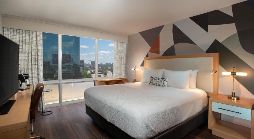 The staff was so friendly and helpful!! Our room was clean, comfortable, and so nice! We were even asked at check-in if we prefer a room closer to the elevator or further away, and they gave us a room on the top floor away from the highway!! The bar was also super nice and they had live music!