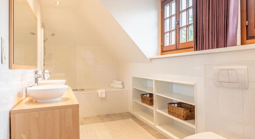 Situated in a quiet area close to the shops and ~750m to the sea which you can walk or go by bike (can be rented for ~8€/day). Nicely renovated old house. Living room, dining room, kitchen, small toilet and garage which can be used for table tennis. Upstairs 3 bedrooms: One with a spacious water bed which I considered quite soft. One with a normal spacious double bed. And a third smaller bedroom with a nice Ikea 'Hemnes' sofa bed for two. Plenty of space to put your clothes. Modern bathroom. Kitchen is well equipped, dishwasher, washing machine, tumble dryer. Everything very clean and new.