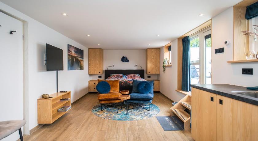 We liked very much the interior, especially the bed. Everything was clear and well prepared. In the fridge we found some nice welcome drinks and furthermore there was good coffee and tea. Amazingly is the view over the water from the B&B windows.