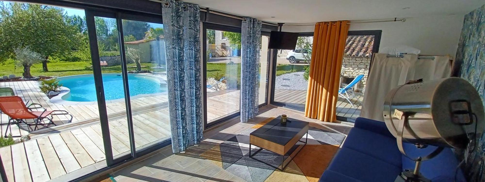 Situated in Cierzac, Appartement dans les vignobles features accommodation with private pool, free WiFi and free private parking for guests who drive. The property features garden views and is 42 km f