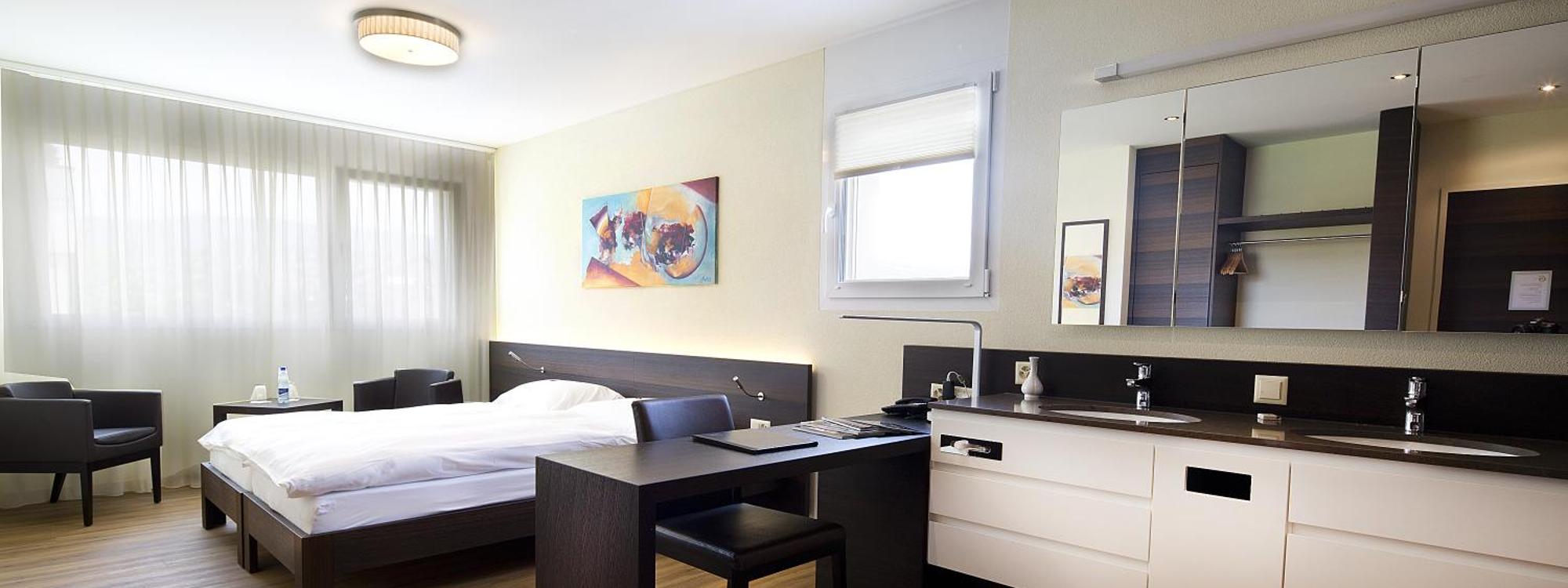 Hôtel Glanis is 100 metres from Gland Train Station and 1 km from Lake Geneva. It offers free WiFi access and includes a restaurant serving French cuisine.The spacious and modern rooms offer a flat-s...more