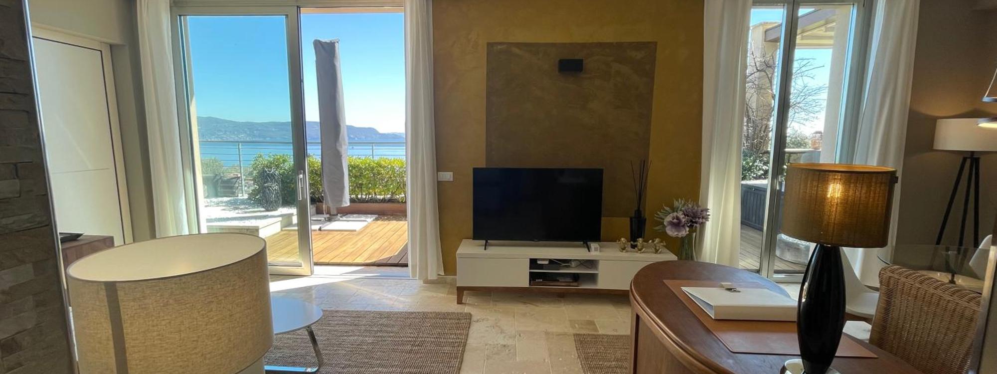 Featuring air-conditioned accommodation with a rooftop pool, lake view and a balcony, Deluxe Sunrise Sky Terrasse 2 Bedroom Design Apartment and Fantastic Lake View is set in Maderno. Free WiFi is fea