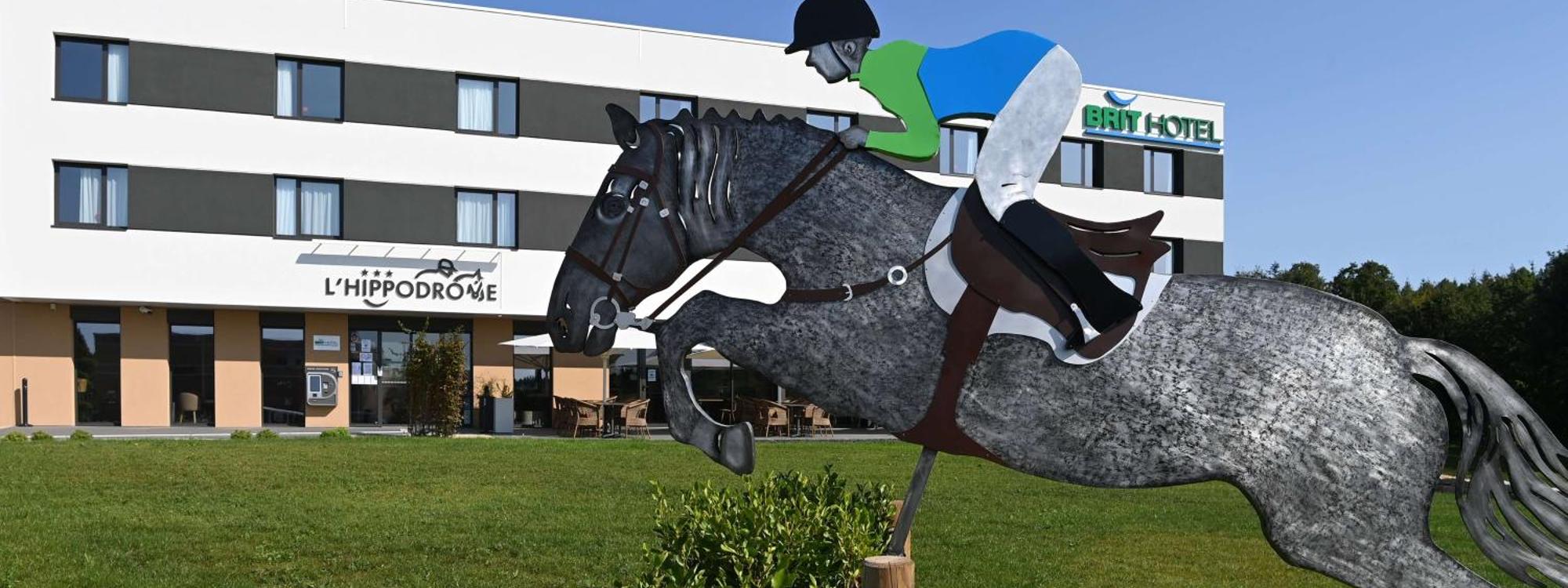 Situated in Ploërmel, 46 km from Vannes Train Station, Brit Hotel Ploermel - Hotel de l'Hippodrome features accommodation with a garden, free private parking, a shared lounge and a terrace. Featuring.