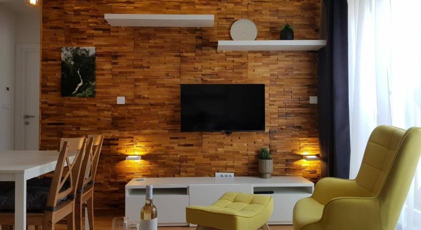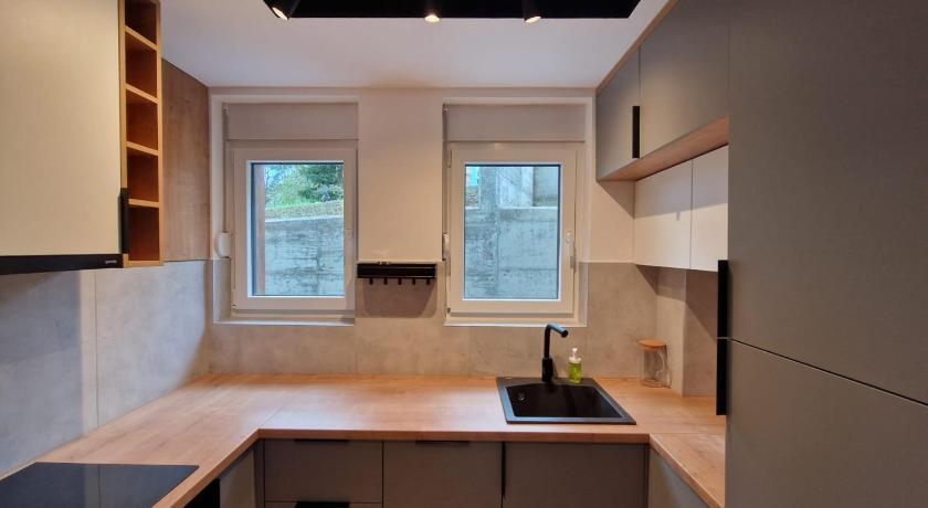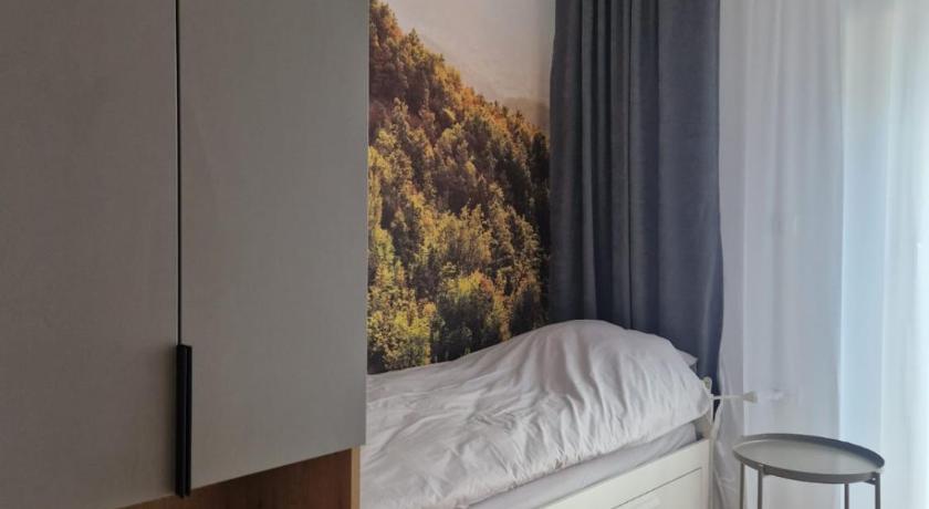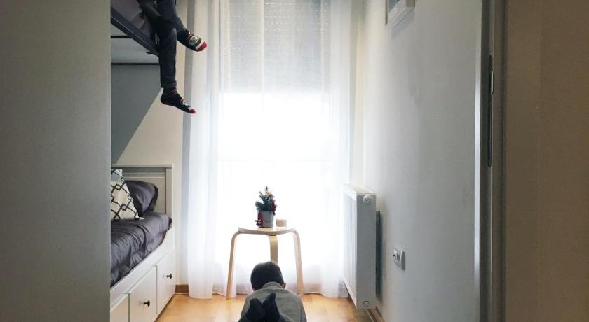 Nice apartment with a lot of space, everything was clean (bathroom, kitchen, living room, sleeping room) and well equiped. Good concept with shared living room for all guests where you can seat while chidrens could be in play room.