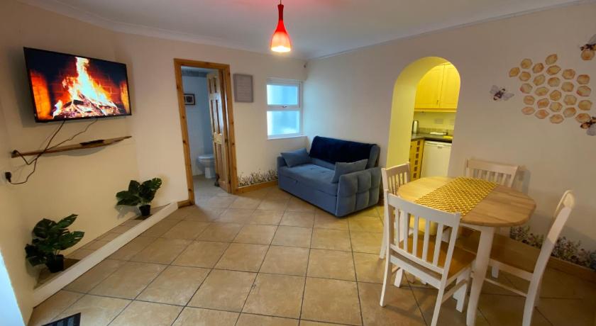 Barbecue, Bath or Shower, Bathroom, Cleaning products, Clothes rack, Dining area, Dining table, Electric kettle, Entire unit located on ground floor, Flat-screen TV, Hairdryer, Heating, Kitchenette, Kitchenware, Linen, Outdoor dining area, Outdoor furniture, Patio, Private entrance, Refrigerator, Seating Area, Semi-detached, Shower, Sofa, Stovetop, Tea/Coffee Maker, Terrace, Tile/Marble floor, Toaster, Toilet, Towels, TV, Wardrobe/Closet