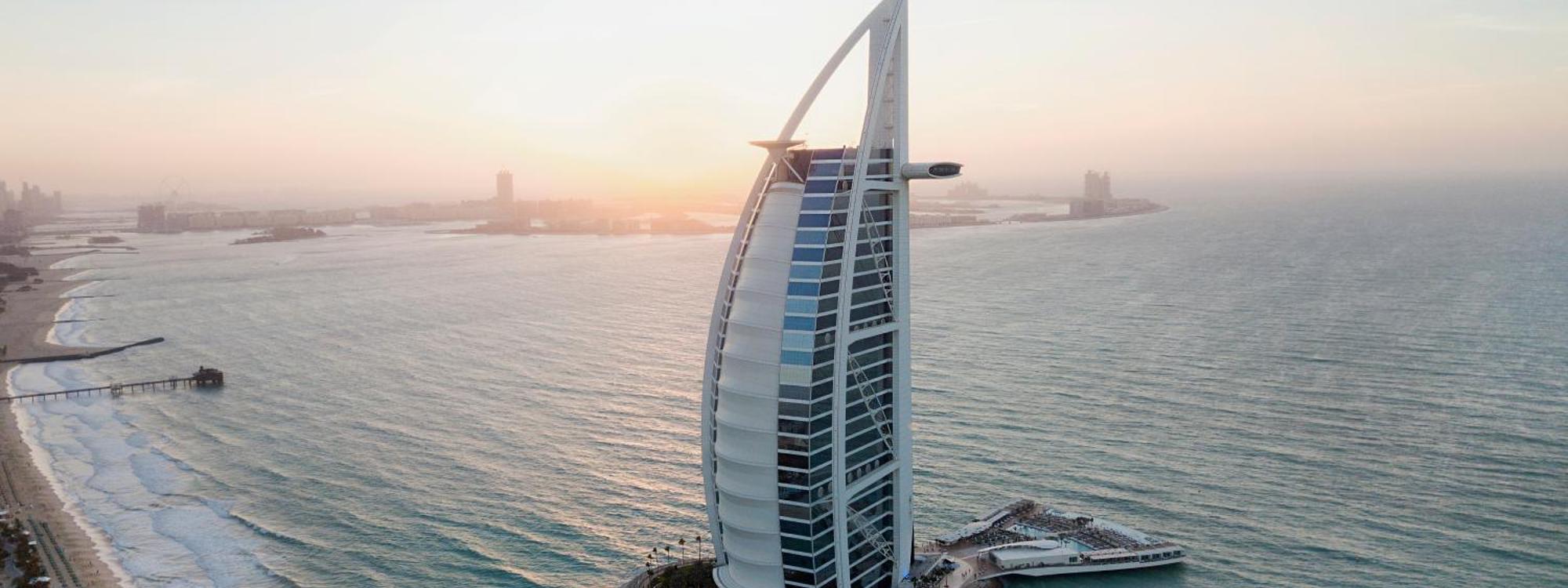 Situated on its own island, Burj Al Arab Jumeirah features suites overlooking the sea, 8 signature restaurants and a full-service spa. Guests may arri...more