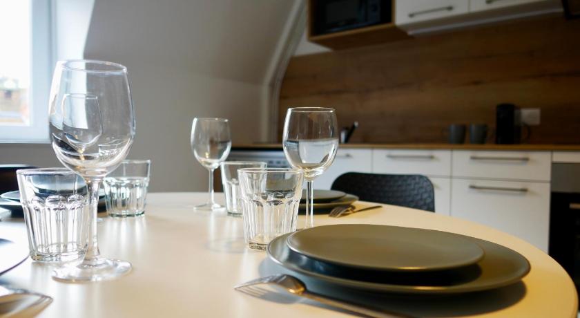 Bath or Shower, Bathroom, Children's high chair, City view, Cleaning products, Coffee machine, Desk, Dining table, Dishwasher, Dressing Room, Electric kettle, Fan, Flat-screen TV, Hairdryer, Heating, Iron, Ironing Facilities, Kitchen, Kitchenware, Linen, Microwave, Oven, Private flat in building, Refrigerator, Shower, Sofa, Stovetop, Tea/Coffee Maker, Toaster, Towels, TV, Upper floors accessible by stairs only, Wardrobe/Closet, Washing Machine