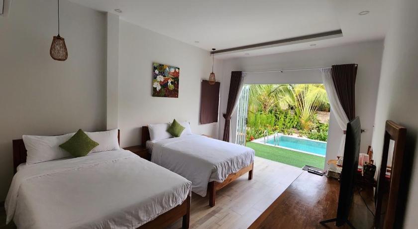 The villa is affordable for everyone. The house is suitable for those who love quiet and airy, at this time in Phu Quoc. They have a motorbike rental service at a very reasonable price. For us, we like to go for a walk, this place is a great place to relax, if anyone wants to enjoy the noisy atmosphere in the center. Of course you can rent a motorbike to go to the center or call a taxi to your door.Maybe we are older so we like the space here more.. but it is worth experiencing for young people, especially families or groups of friends..We are only 2 people but have 3 bedrooms so other rooms are not necessary for us. If young people go together in a group, it will be very economical 😄😄Next time we will come back for sure.