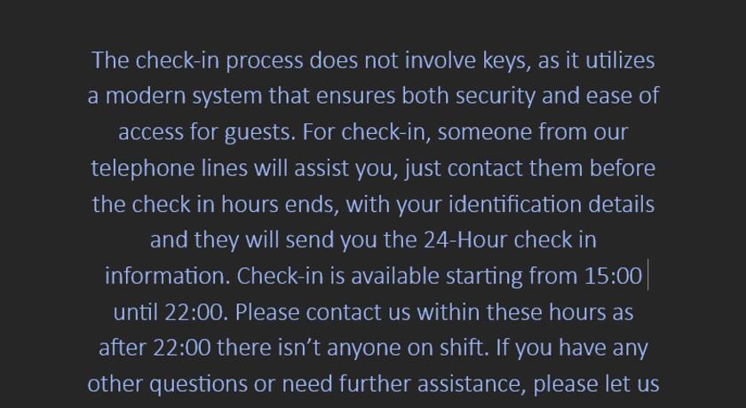 Please inform in advance of your expected arrival time. You can use the Special Requests box when booking, or contact the property directly with the contact details provided in your confirmation.