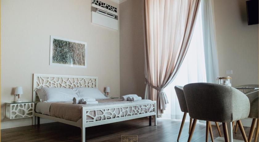 Location was very close to Herculaneum ruins and 5 minute walk to train for Naples/ Pompeii / Sorrento. Ercalano is quiet but with lovely food options and is authentic Italian. We got airport transfer who was on time and lovely. Salvatore gave us lovely welcome and lots of info. All his food recommendations were fabulous. Room was comfortable, clean, spacious and food temp. Modern in an old building. Loved this!!!