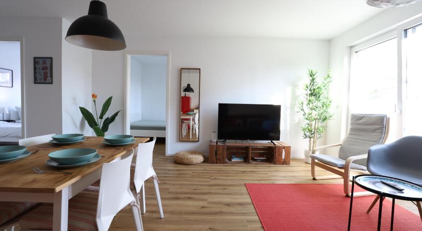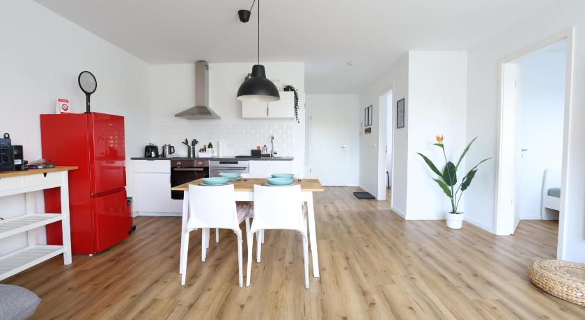 Located in a quiet village. Lots of parking and short distance from park and ride if you want to visit Bonn or koln. We went to phantasialand and was a very easy short drive from here. Place had lots of room for our family of 5 and was modern and clean. We arrived late 11pm after a long drive and had no issues with check in.