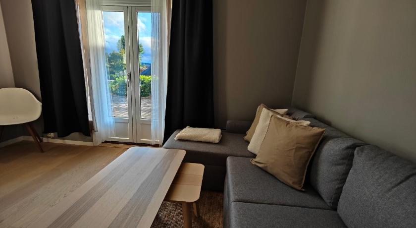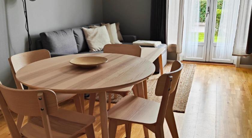 Bathroom, Carpeted, Clothes rack, Coffee machine, Dining table, Dishwasher, Entire unit located on ground floor, Garden view, Heating, Kitchen, Kitchenware, Linen, Outdoor dining area, Oven, Patio, Private entrance, Refrigerator, Seating Area, Shower, Sofa, Soundproofing, Stovetop, Terrace, Toilet, Towels, TV, Wardrobe/Closet, Washing Machine