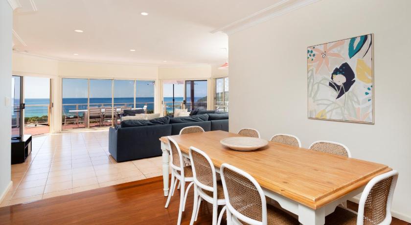 Awesome location, amazing ocean views and sunrises to take in and short walk to beach and Cafe. So peaceful going to sleep to the sound of crashing waves, strong winds on some days as should be expected for the location, but refreshing. Main loungeroom perfect place for curling up with a good book on an overcast rainy day. Very roomy, 3 bathrooms a bonus, especially with teenage granddaughter. Loungeroom with views was breathtaking. 2 Loungerooms and TV's was great especially with so much wet weather. Plenty of linen. Kitchen was a bit unequipped, had to buy simple things like a whisk and some oven ware, but cutlery and crockery was more than adequate. An airfryer would have been well used. There was no vacuum cleaner or mop, only a broom and dustpan. The house had a huge verandah which was amazing but rendered useless during wet weather as it is not covered, same for bbq area out the front. Fencing was not quite dog proof in backyard, frontyard fencing was good, but again no cover for wet weather. House has had water damage on ceiling and mould smell is quite strong, not good for my lung condition. Overall amazing place but would not rebook unless mould problem was addressed, vacuum, and mop provided and there was some form of shade for verandah.