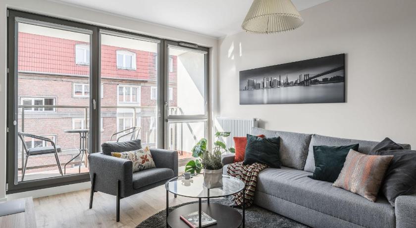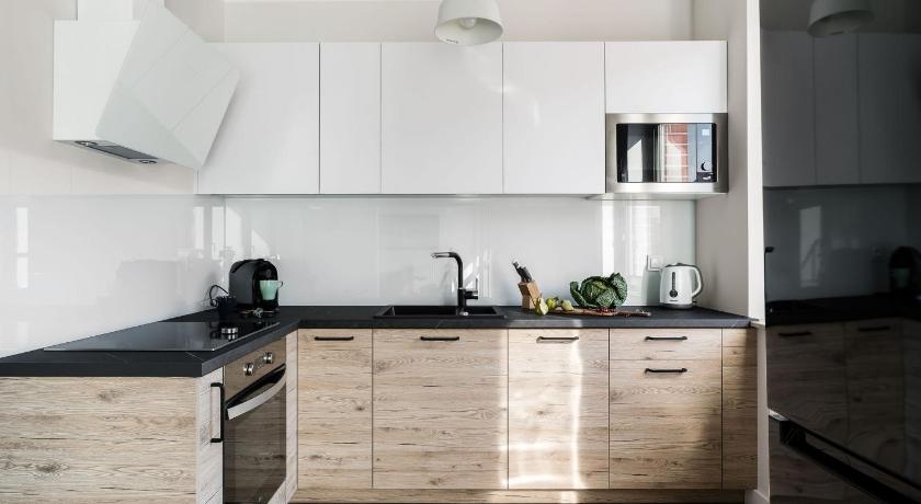 I stayed in a 2 bedroom apartment at the 1st floor. Really high quality beautiful interior, it was in the top 1% of the apartments I've stayed in so far! It was useful to have two single beds in one of the bedrooms. The saloon with the kitchen was pretty big and very pretty. Kitchen was fully equipped. I rented also a single bad apartment - it was less fancy in comparison, but very modern, new and with a beautiful view on trees from the 4th floor.