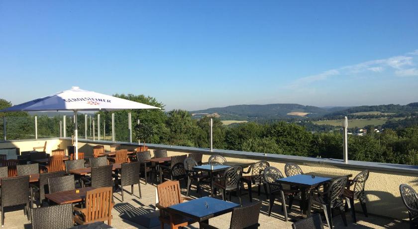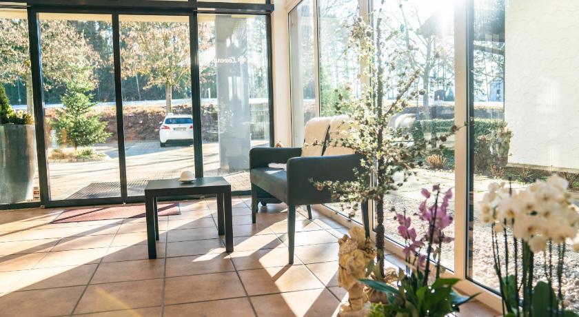 Location good, with on-site fitness, sauna & wellness and close to edge-of-town wooded area with many paths and tracks for walking. Staff friendly and helpful. Food in restaurant of good quality and well-presented.