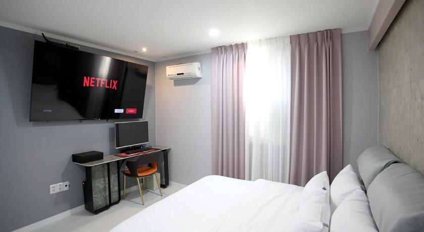 The location was good, easy to take bus to Jikjisa temple, can take the bus to go the train station Everything was clean, shower was clean and well equipped The staff speaks english and is very helpful and nice Close to the train station but careful : 15 minutes walk can take longer with luggage and weather Full media service with two computers, TV, with streaming services and internet access