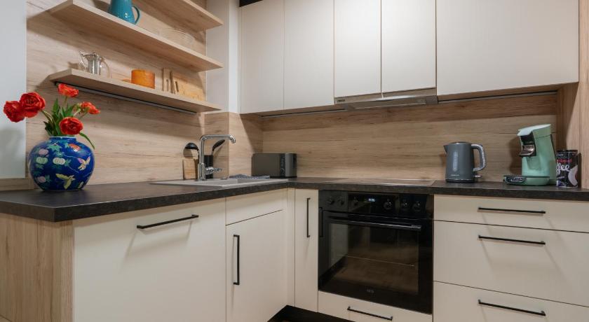 The flat is situated right in the city centre, is fully equipped in the modern style. Perfect for two couples with babies. We appreciated baby bed, dishwasher, coffee machine, lift to the first floor and two rooms with separated kitchen next to them. The host was really kind and helpful with everything.