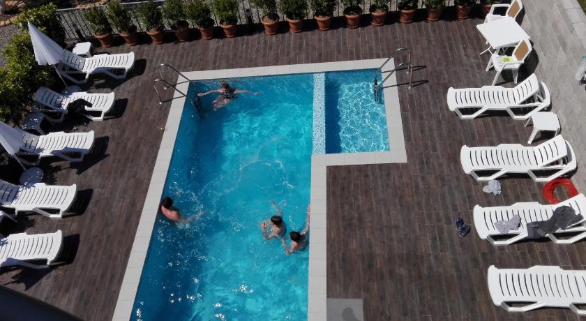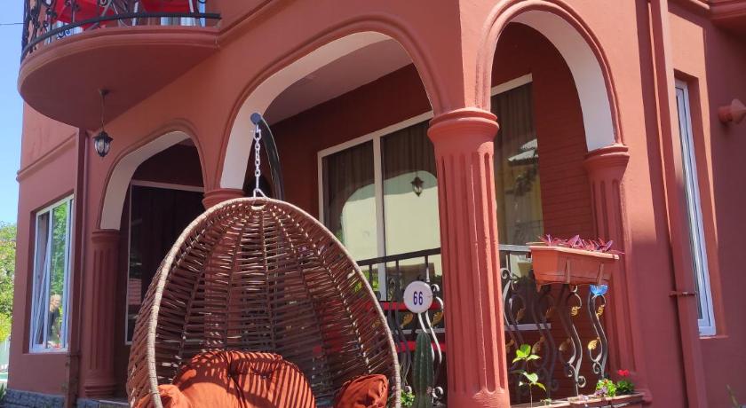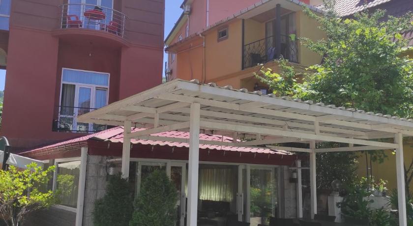 The guesthouse is situated in a quiet area just off the beach and the busy coast road. Garden and swimming pool were gorgeous. The rooms are very spacious and have balconies + a fridge. There are a lot of restaurants in the area but the guesthouse does not offer meals. There is a summer kitchen with a barbecue in the garden though where you can make your own meals. We really enjoyed our 9 days there