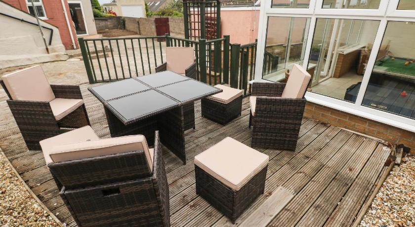 We loved the location with the sea views and coastal path at the bottom of the road. We really enjoyed all the different areas of the house as we were a party of eight. There were two bathrooms and the outside room was a hit with the younger generation. The porch is a great size when coming in from the beach with loads of bags and shoes. We had no problem parking outside the front porch on the road. The bonus is watching boats from the kitchen and lounge areas. Lovely big fridge/ freezer A great welcome pack with bread, Morfa milk and Welsh cakes .
