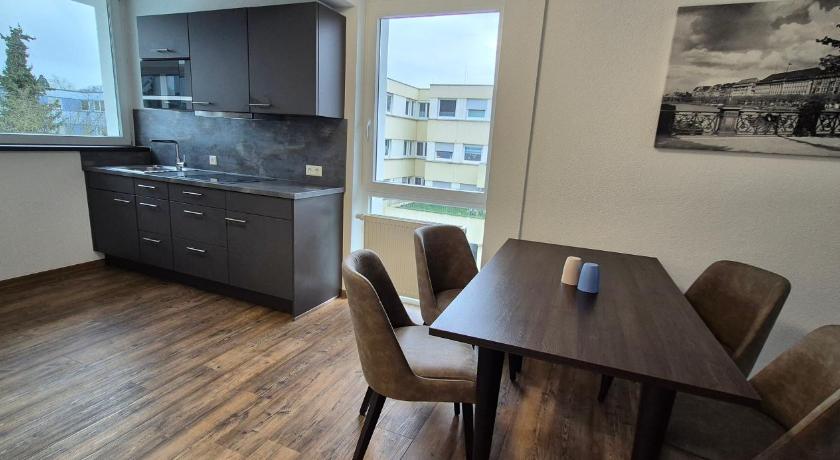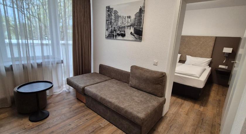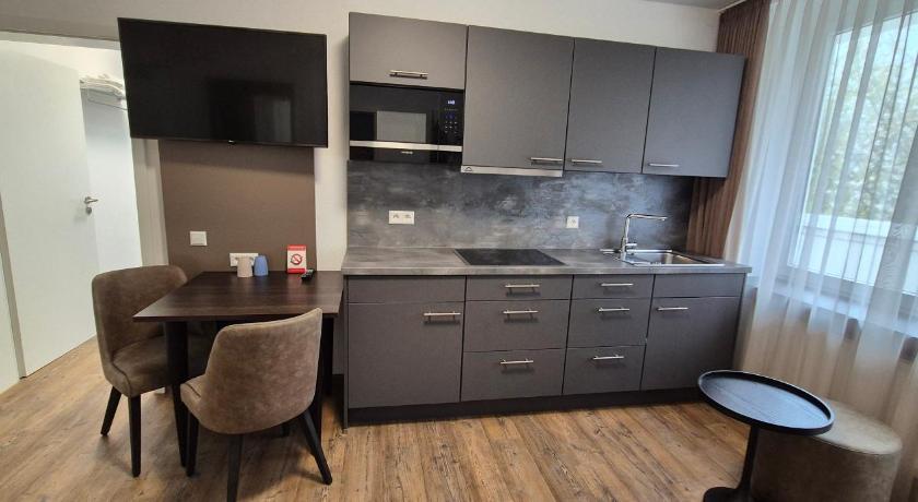 Probably the best price-quality ratio among all the hotels I've been to. A quiet place in a residential area. Great big, clean room (actually a two bedroom apartment) with giant windows, TVs and a fridge (took a room for 4 people). Good WIFI. Great and polite staff who switched to English with me. Perfect breakfast - everything was simple and tasty + incredible coffee and hot chocolate for children (breakfast is paid only for adults). Dog friendly (€10 per night). a great place to stay for a family with a pet