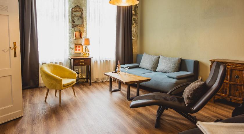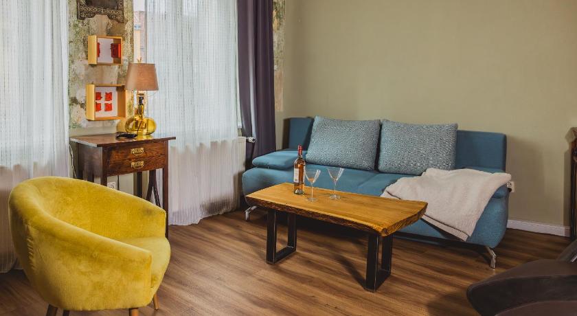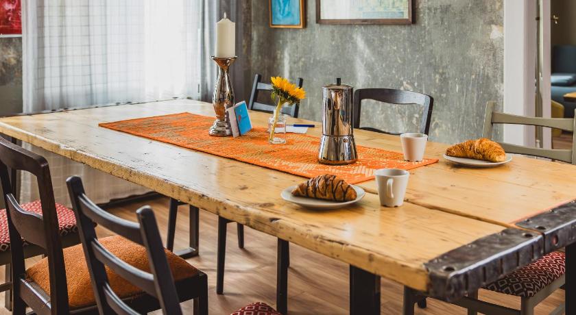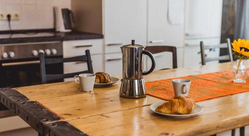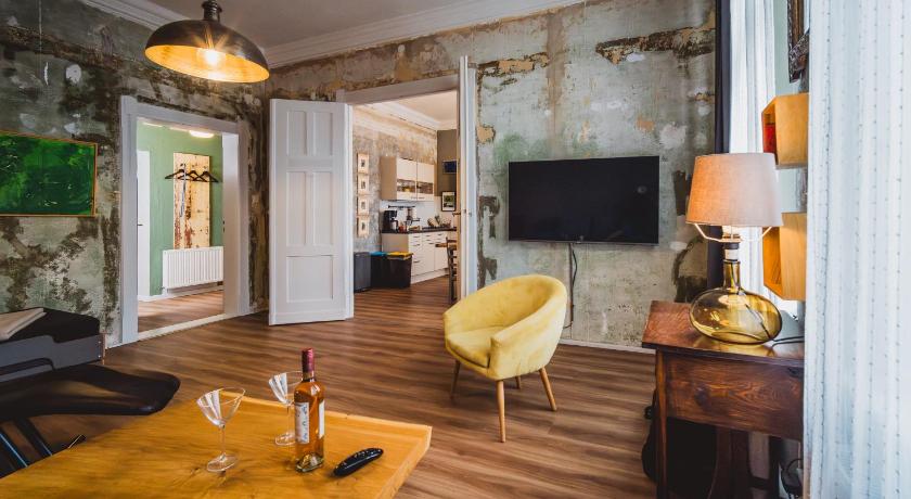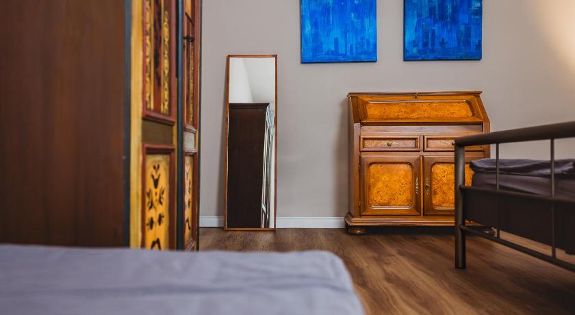 The apartment is in a good location. I really enjoyed the vibe: it has a high sealing, contains many pieces of art and vintage furniture. One gets a feeling of staying in a mini estate. Also, it is sparkling clean.