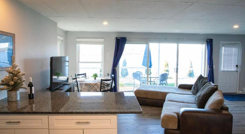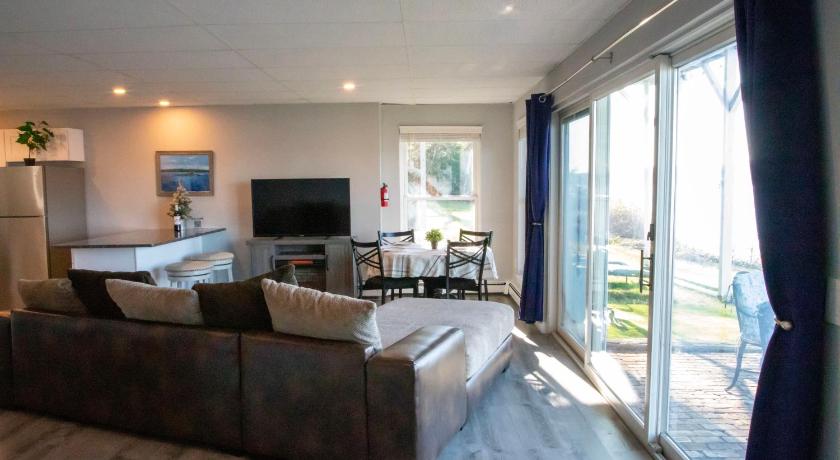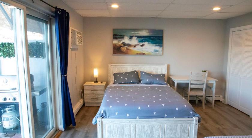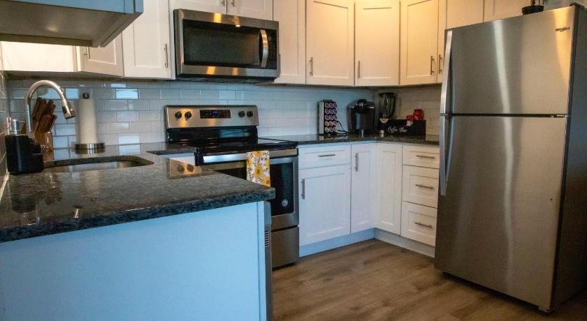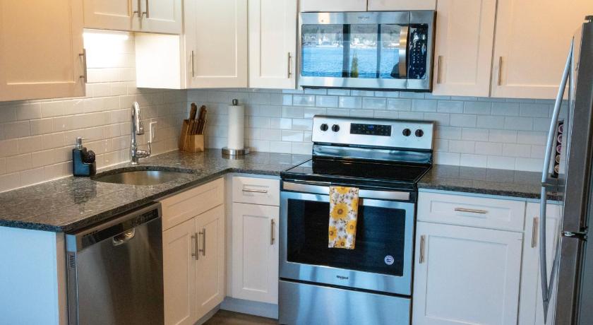 The location right by the river was lovely, and it was only a couple of minutes from the submarine museum and the SS Nautilus (which unfortunately was not open during our visit.) The apartment was clean and the appliances were new. There is a Keurig coffee machine, with coffee pods supplied. The patio is quite expansive, with a dining table, a seating area, lounge chairs, and a gas grill.