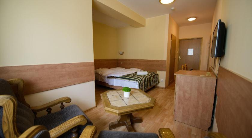 Nice location. Gas station is near the hotel, anytime you can get some additional food or coffee. Quite a good choice for breakfast. Easy and quick check in and check out. Nice personnel. The hotel located not far from Szczecin and German.