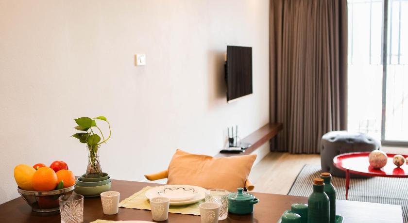 Fully equipped. Beautiful design. Enough space and facilities. Lift. Light dual color. White and yellow. Excellent service. Quiet street. No honking. Multiple grocery stores nearby. Easy pickup for Grab motorbike and car. Fair price