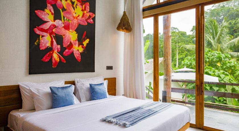 Beautiful place in the jungle and about 20 mins walk through the jungle to secret beach which is stunning and fantastic to swim in . Some great snorkelling too . Rosie and her team looked after us very well