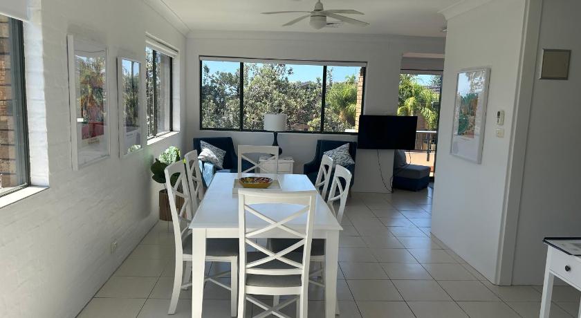The Penthouse was very comfortable, cosy, with the feel of luxury, exceptionally clean, spacious, well equipped,simply fabulous. We felt amazing. The location is perfect, close to the beach. Hawks Nest is such a lovely place, we fell in love with it and we will definetely be back again. Thank you to Rosemary, our host, who stayed in contact with us and provided us with all the information needed.