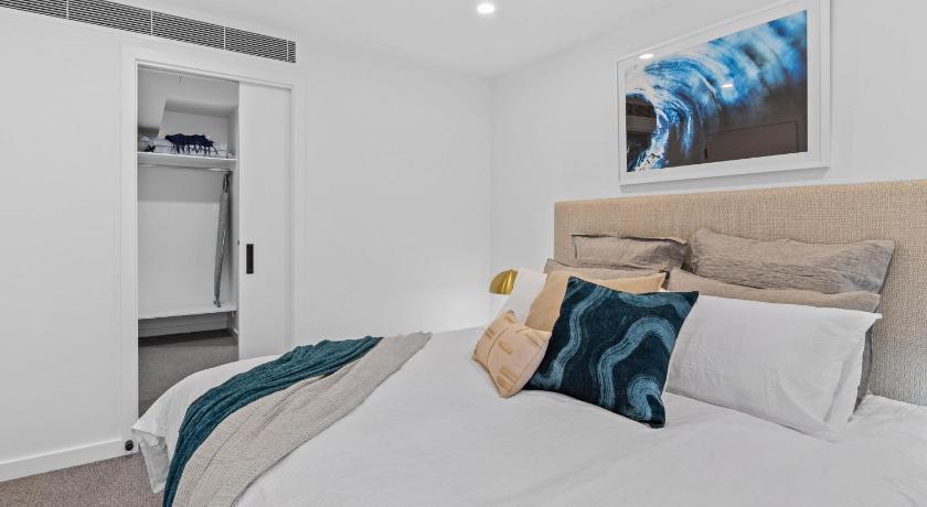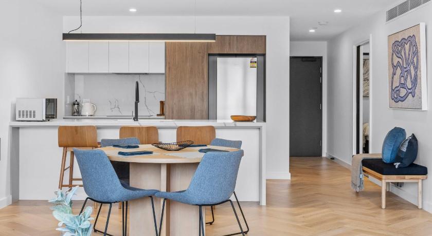 Was within walking distance to the town centre. Was very modern and new and spacious. Plenty of room for 2 couples. . The parking underground was helpful. However, the living area was extremely hot in the afternoon. A blind on the sliding doors for the sun would be a bonus. Also we struggled to operate the cook top, microwave and tv. There were trying pans provided which wouldn't operate on the induction cooktop. (Why have them there) We needed to go online to find a manual to operate the microwave, and it was pure luck that we sorted out the tx. Step by step instructions for all 3 would have been very helpful.