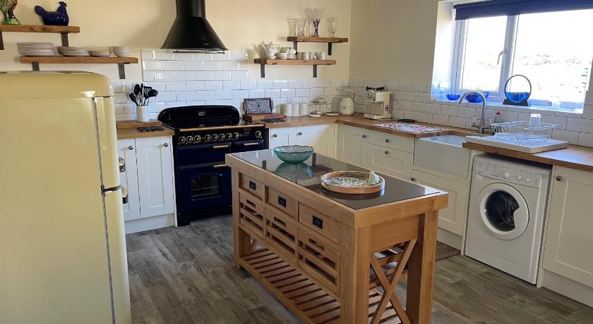 Absolute WOW from opening the door. Very clean and well thought out,everything you need for a stay Very well planned with lots of care. Location great to visit all island. Generously left nice bottle of wine. Very peacefull. 4 horses visited over fence early morning. Lovely friendly big ginger cat visiting us and making himself at home.