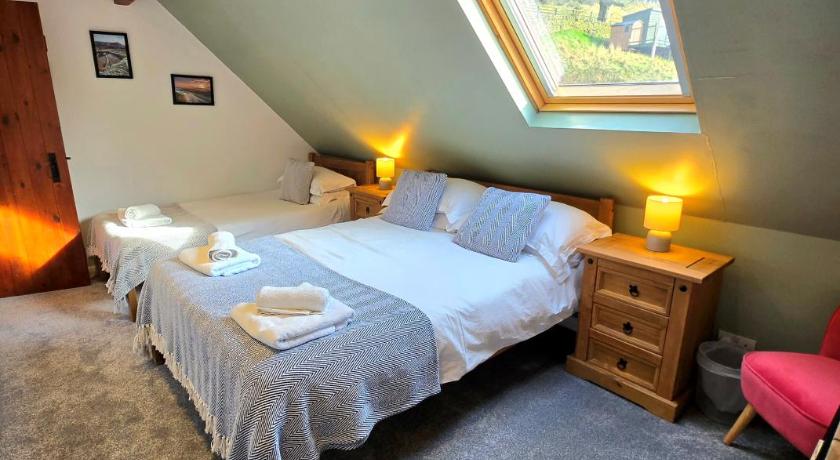 Lovely quiet location. Great location for walking with a path coming right through the farm location making it easy to pick up a route. Pool on site for visitors to use. Special touch of homemade lemon drizzle cake made for our visit. Welcome pack with tea, coffee, milk and biscuits. Small pack with dish sponge, cloth, wash liquid and bin bags. Miniature toiletries in the bathrooms ideal for a short stay.