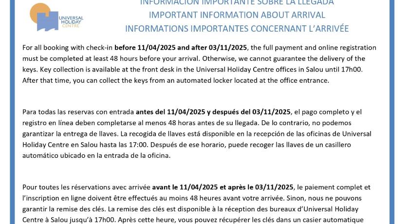 Arrivals after 19:30 must complete a registration form and pay the full amount at least 48 hours before arrival. There is an extra fee of EUR 50.