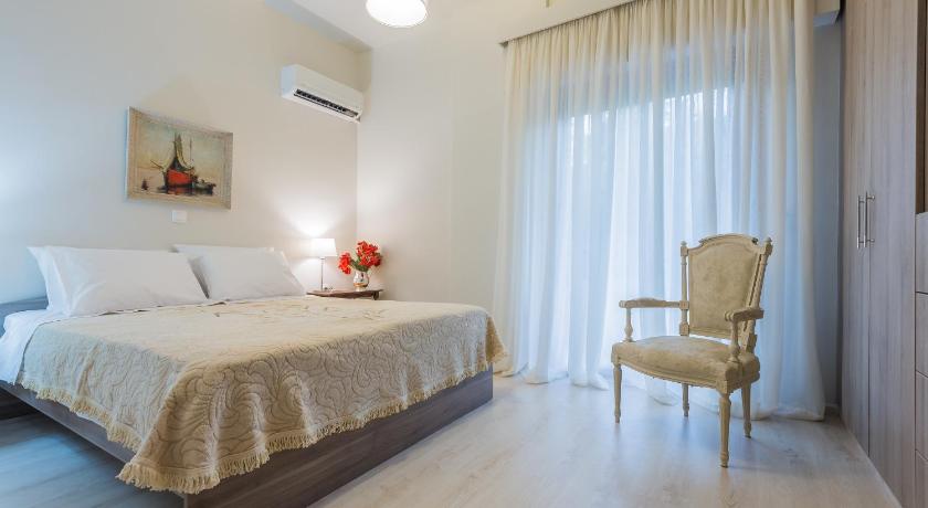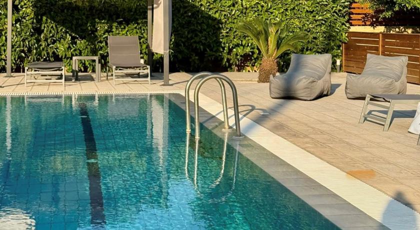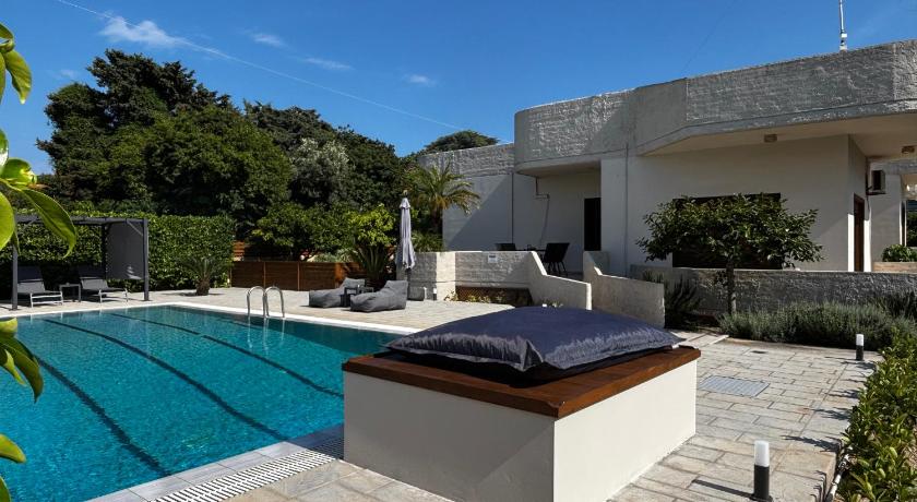 Wonderful property in a nice quiet location, a selection of restaurants and bars and a few nice beaches are walkable. There is a direct bus into Rhodes town close by and a taxi rank. You are next door to a supermarket and a bakery. Each room had A/C. The hosts were excellent and very speedy with our requests. The pool was excellent, large and deep.