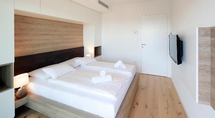 Modern spacious apartment on the 2nd floor with a nice sea view. Looked exactly as in the pictures. The pool area with a hot water jacuzzi was perfect. The water in the main pool was clean and good temperature too. The beds were very comfortable with quality bed linens. The kitchen was sufficiently equipped for serving meals. The property is in a very quiet area, no cars or people passing around at night. The host was nice and always available.