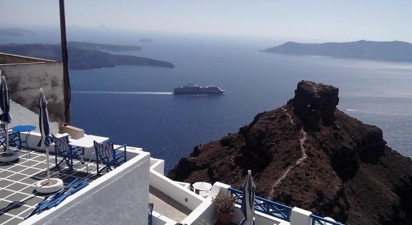 The views from our room were amazing! We were able to walk right out onto the fira to oia walk and although lots of people walk past, the windows when shut were sound proof. Georgia was such an amazing host, she offered for us to use the apartment with hot tub for our first 2 nights due to a last minute cancellation. She also arranged for porters to help carry our luggage up and down all the stairs. We were also able to make a simple pasta dinner and enjoy the sunset from outside our room which was spectacular.