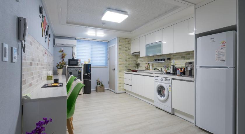 Beds were really comfortable. Shower was good, and the shampoo and conditioner were good quality. Laundromat next door and parking easily available outside. Easy walk to the train (to go to the airport or into Seoul). Food within easy walking distance. Owner was very nice and helpful.We stayed here the night before we deprted Korea.
