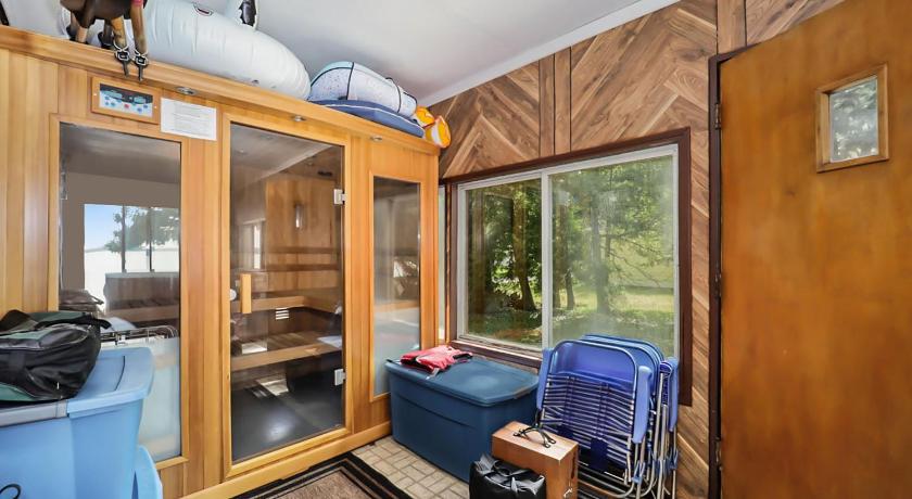 Barbecue, Bath, Bath or Shower, Bathroom, Coffee machine, Desk, Dining area, Dining table, Dishwasher, DVD Player, Entire unit located on ground floor, Fireplace, Flat-screen TV, Free toiletries, Hairdryer, Heating, Hot Tub, Kitchen, Kitchenware, Lake view, Linen, Microwave, Oven, Private entrance, Refrigerator, Sauna, Seating Area, Shared Toilet, Sofa, Stovetop, Tea/Coffee Maker, Toaster, Toilet, Towels, TV, Video, View