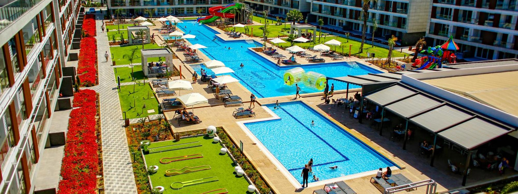 Courtyard Long Beach Holiday Resort features a seasonal outdoor swimming pool, shared lounge, a restaurant and bar in Iskele. A Turkish bath and a car...more