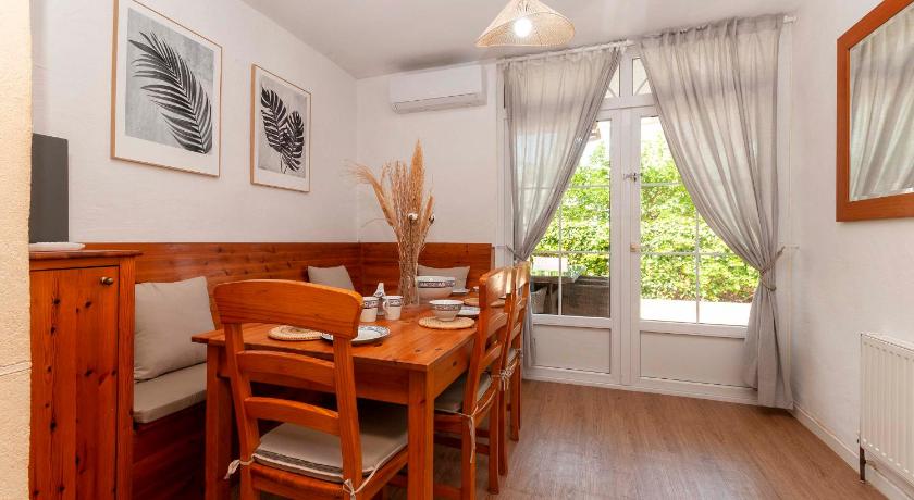 Air Conditioning, Barbecue, Bath, Bath or Shower, Bathroom, Cable Channels, Children's high chair, Cleaning products, Clothes rack, Coffee machine, Desk, Dining area, Dining table, Dishwasher, Dressing Room, Electric kettle, Entire unit located on ground floor, Fan, Flat-screen TV, Garden view, Hairdryer, Heating, Iron, Kitchen, Kitchenware, Linen, Microwave, Mosquito net, Outdoor dining area, Outdoor furniture, Oven, Refrigerator, Seating Area, Shower, Sofa, Tea/Coffee Maker, Terrace, Toaster, Toilet, Towels, Towels/Sheets (extra fee), Trouser Press, TV, Wardrobe/Closet, Washing Machine