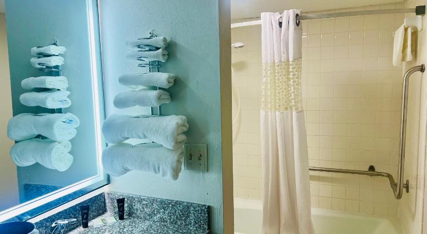 The location was perfect for us as we were traveling across contry. The desk clerk was friendly and respectful. The price was fair. Everything in the room was in working condition. The king mattress was comfortable.