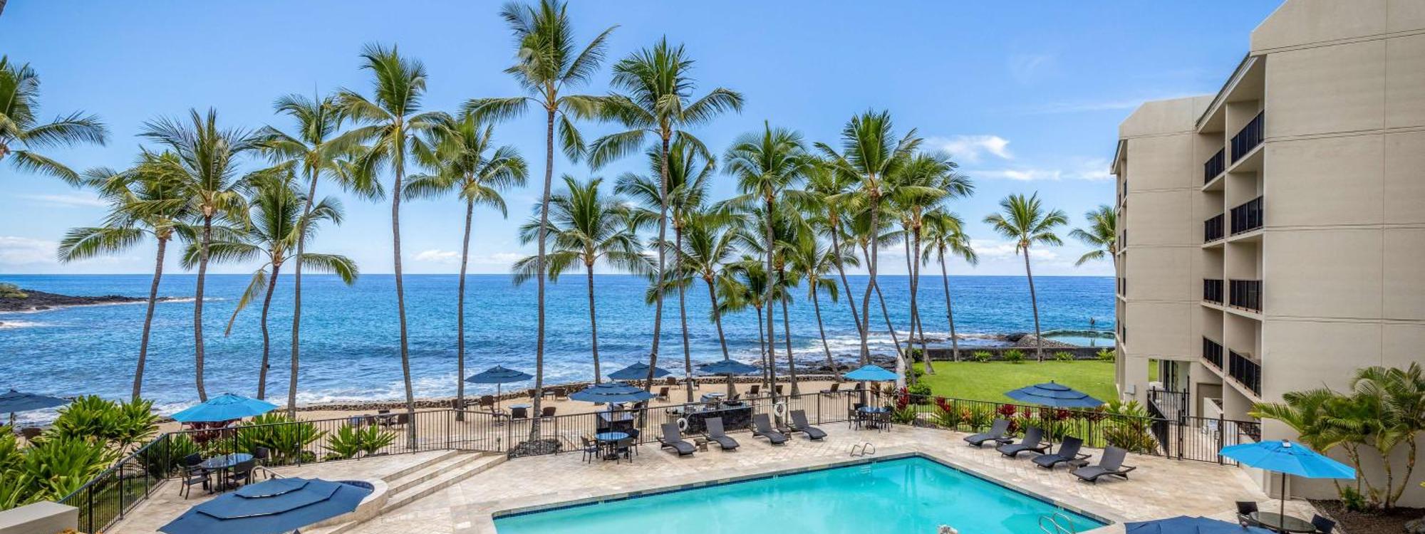 Overlooking the Pacific Ocean, this resort in Kailua-Kona, Hawaii features an oceanfront outdoor pool and spacious suites with a fully equipped kitche...more