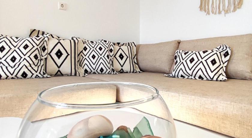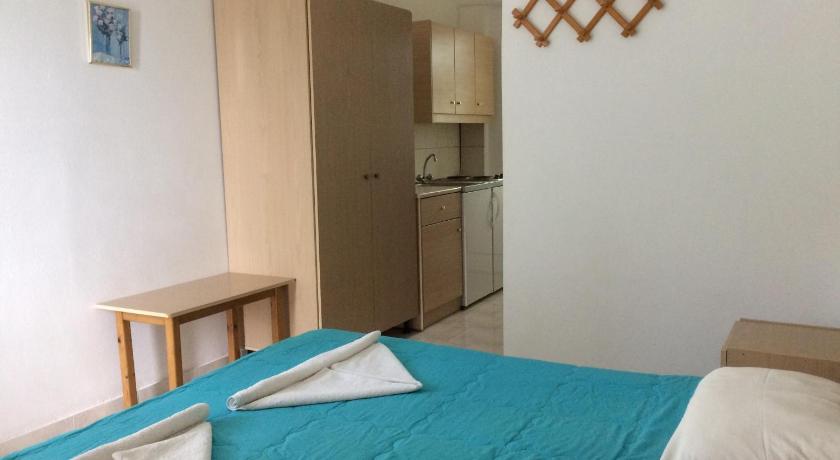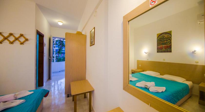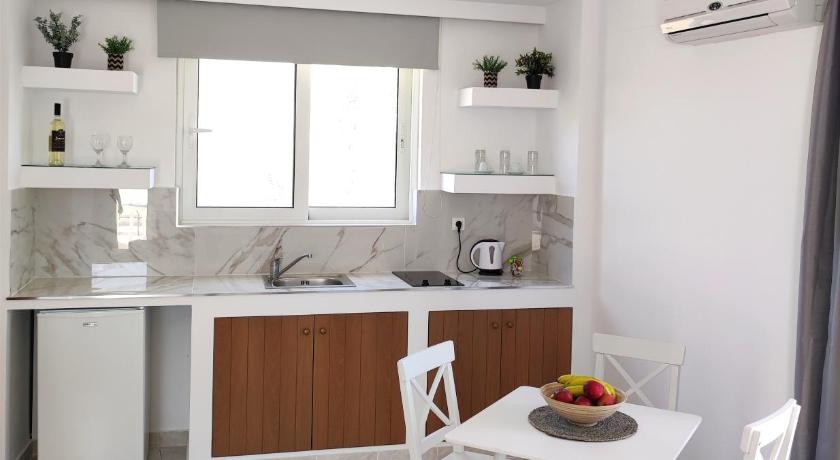 We had a great stay at Sea Harmony during 2 weeks. Big room with kitchenette. Clean swimming pool with bar, possibility to eat. Kids friendly. Pet friendly. Friendly family running the place. Close to the beach 3min on foot. 5min on foot from the village Kalathos.Bed linnen and and towels changed twice a week. Quiet place.