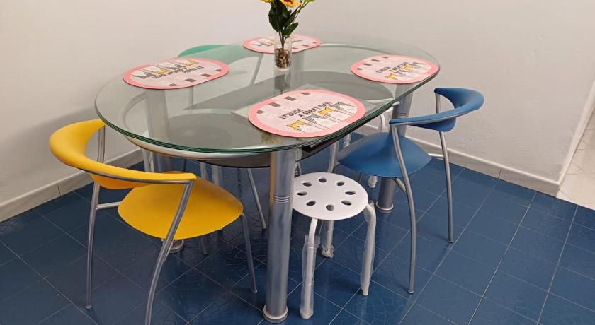 Air Conditioning, Cable Channels, Cleaning products, Clothes rack, Dining area, Dining table, Fan, Free toiletries, Hairdryer, Kitchenware, Linen, Refrigerator, Shared Toilet, Sofa, Toilet, Towels, TV, Wardrobe/Closet, Washing Machine