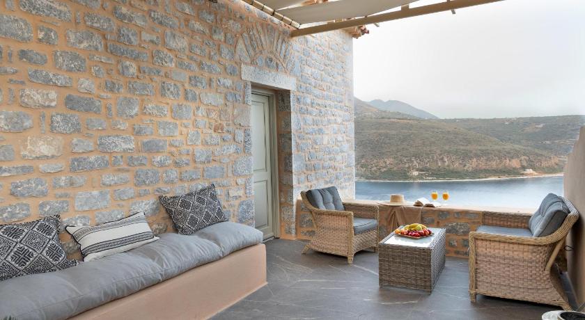 Firstly the view. Mountains and ocean. Absolutely spectacular. The most peaceful, restful, relaxing stay on my entire trip. The stone architecture (typical in Mani region) and the entire build is brand new, with thoughtful attention to detail. Colour, styling, room layout couldn’t have been better. Just beautiful. Our room was in the second building and was exactly as pictured, but even better in real life. Hard to capture in photos. If you love stone you’ll love this place! Felt completely private too. Breakfast and reception are located in the main building (a 1 minute walk along the road from our room). Breakfast on the terrace was perfect with a generous mix of savoury and sweet, fresh fruit and juice and local cheese, delicious pastry, eggs and mixed breads and local spreads and the best cappuccino I had in Greece. The hosts are on site and take pride in their establishment. They were helpful, accommodating, approachable. The accommodation is one of only a few new and impressive builds popping up on an otherwise mostly rugged mountainside with a decent road to everywhere. Private and peaceful. A close drive to several beautiful swimming spots (you need a car in this region and you’ll need a car for this accommodation as there is nothing within walking distance). We explored some magical places from here we came ‘home’ to relax with the most beautiful view. The breakfast terrace was also available for a coffee or drink after a day of exploring which was great. We loved it! Highly recommend if this is your thing.