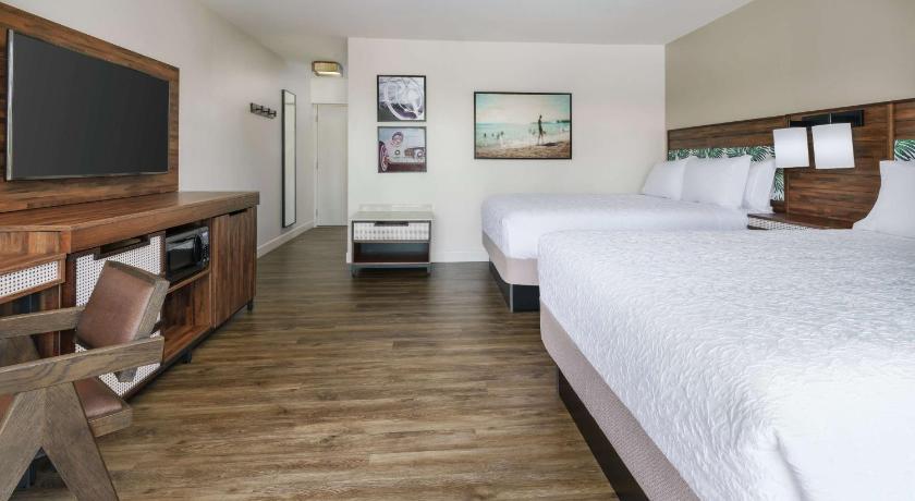 The rooms were spacious, well designed, neat and clean. The staff were kind, helpful, and we loved the feeling of an american "motel". The location it self is outside the main area, but Hampton has a shuttle, go back n forth time to time. I really enjoyed jogging on the beach in front of the hotel, and with two kids Im happy i choose Hampton inn, and not something in downtown. My kids were really happy with a little river and crabs and mangrowe in the garden, and the pool was ver useful as well;) for me to rest 30 mins.